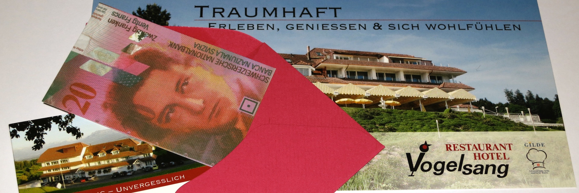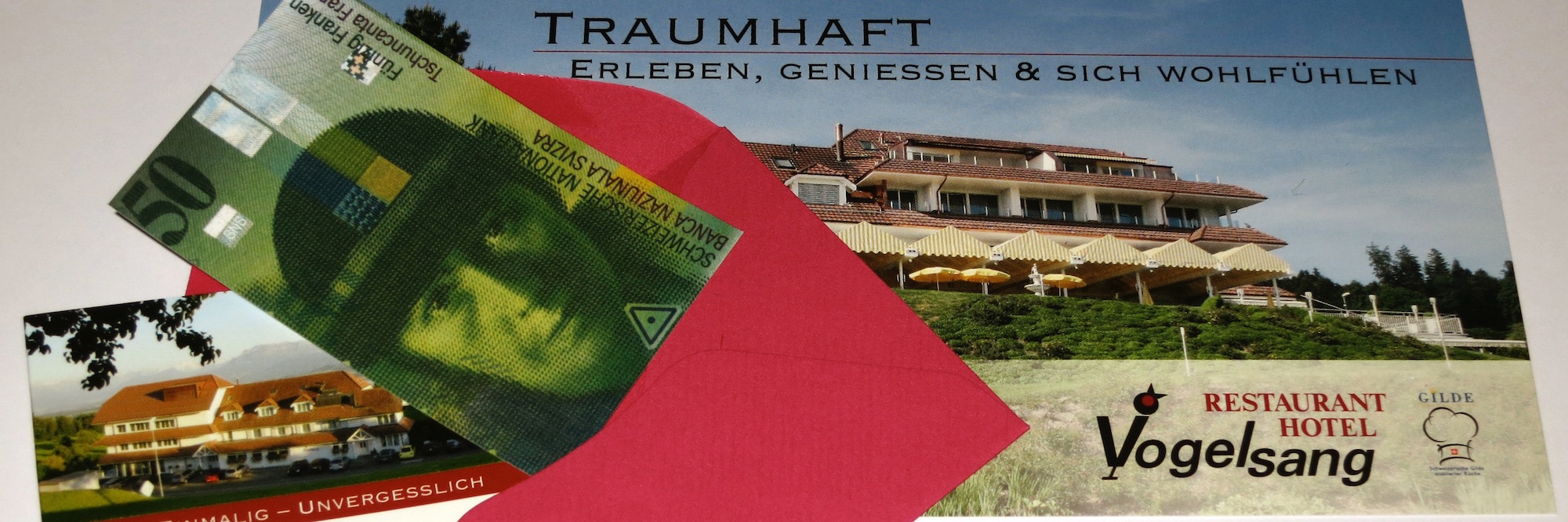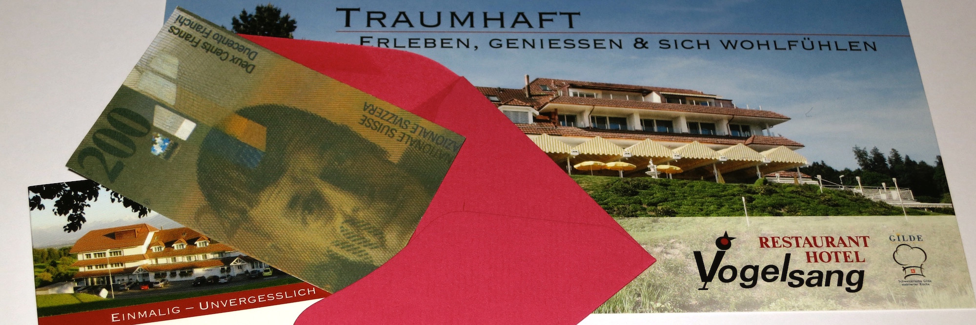Wir senden Ihnen die Gutscheine mit einem Einzahlungsschein per A-Post zu. Für Bestellungen unter Fr. 50.-- berechnen wir Fr. 4.-- für Porto und Verpackung. Wir bitten Sie den Betrag innert 30 Tagen Frist zu bezahlen.