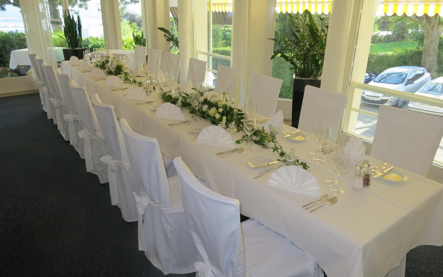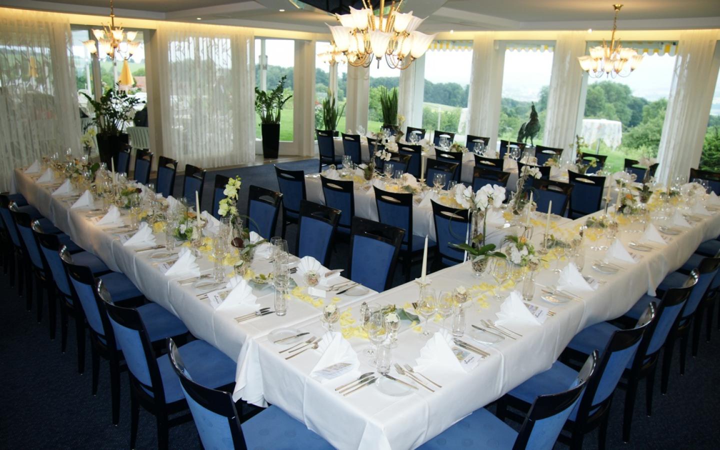 Unser Wintergarten mit Blick auf die Alpen und den Sempachersee bietet ein stilvolles Ambiente bei Kerzenlicht! Dieser Raum bietet sich ideal für Ihre Hochzeit bis 60 Personen an. Sie Haben einen direkten Zugang in den Flanierpark. Dieser Raum mit einer herrlichen Panoramasicht lädt zum geniessen ein.