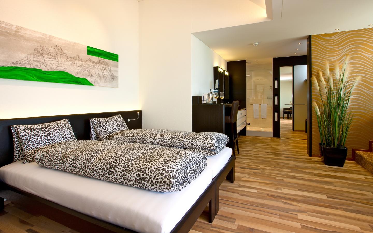 Unsere Romantic Suite im Loft-Design wird Sie begeistern. Geniessen Sie Ihren Aufenthalt auf ihrer privaten Dachterrasse mit einem einmaligen Ausblick auf die Alpen und den Sempachersee.