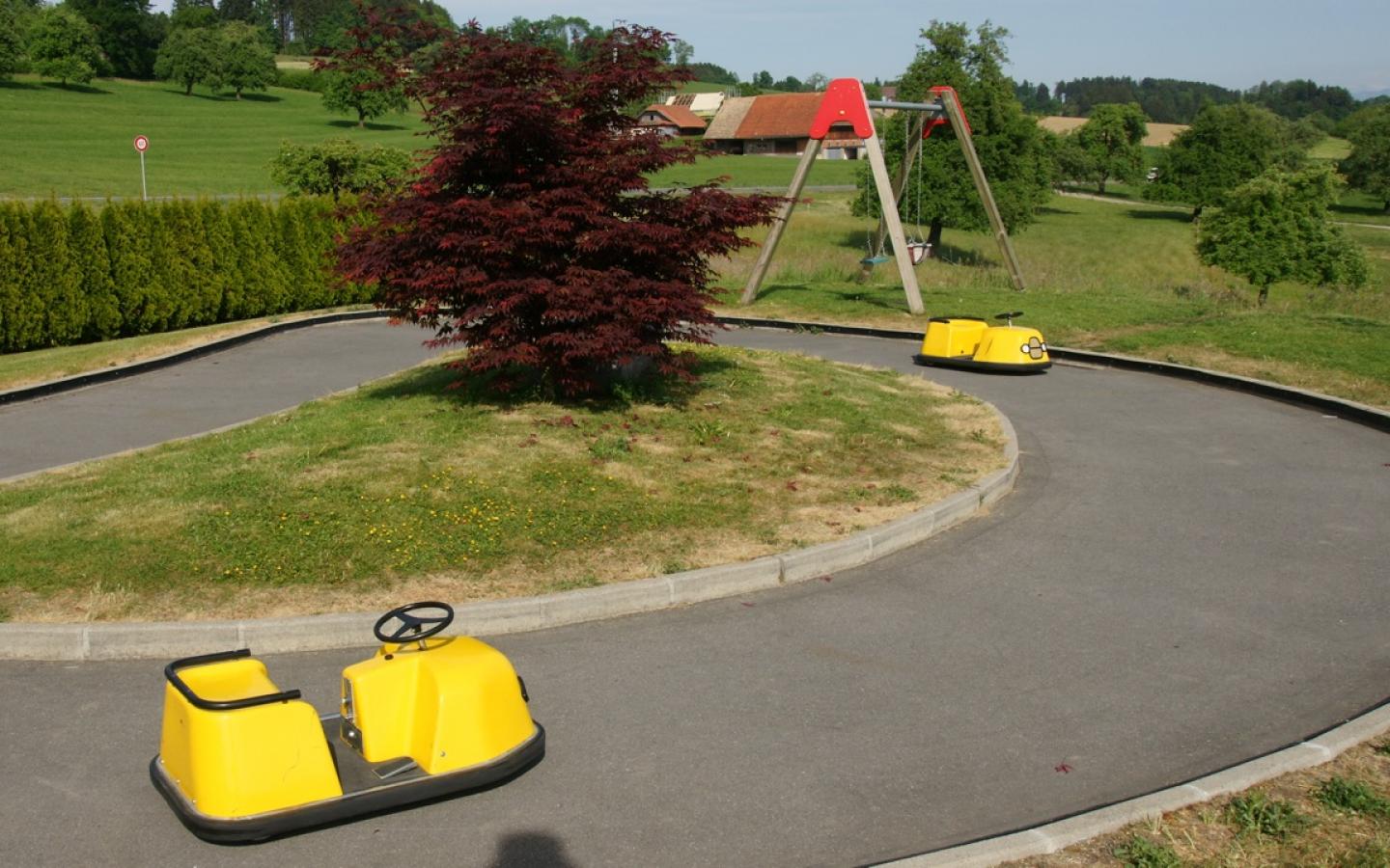 Unser Spielplatz befindet sich im Flanierpark und ist umringt von einem wunderbaren Rasenplatz fernab der Strasse. Die kleinen können sich so auf einem überschaubaren, sicheren Platz vergnügen.